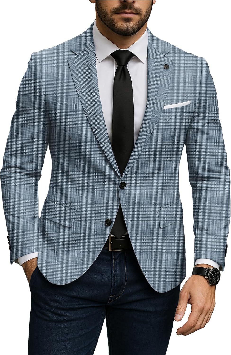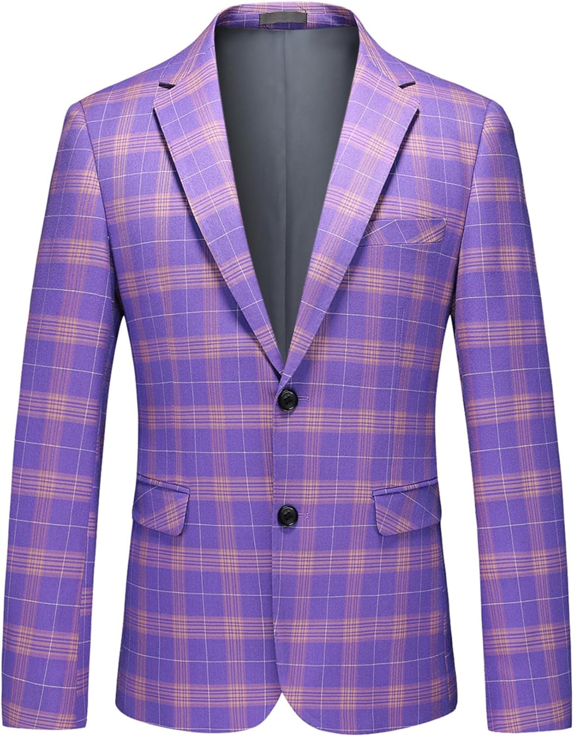 Mens Blazer Plaid Sport Coats One Button Casual Slim Fit Checked Jacket